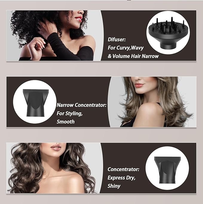 - 【Perfect Curls with Blow Dryer Diffuser】Achieve flawless curls with our wide diffuser, designed to evenly distribute heat from root to tip. The staggered prongs gently catch curls, creating an anti-frizz finish for all hair types. Whether you prefer beachy waves or corkscrew curls, enjoy enhanced definition, volume, and shine with ease. Plus, our Cool-Shot button sets your style for long-lasting results.
