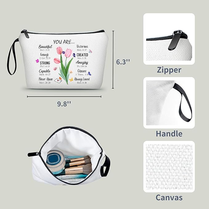- Personalized Design: This personalized design cosmetic bag is truly a special Christian gift! The makeup pouches are customized according to the Christian theme,with a carefully crafted tulip pattern. This will be a perfect gift,expressing your love and concern,and making the recipient feel special and cherished
