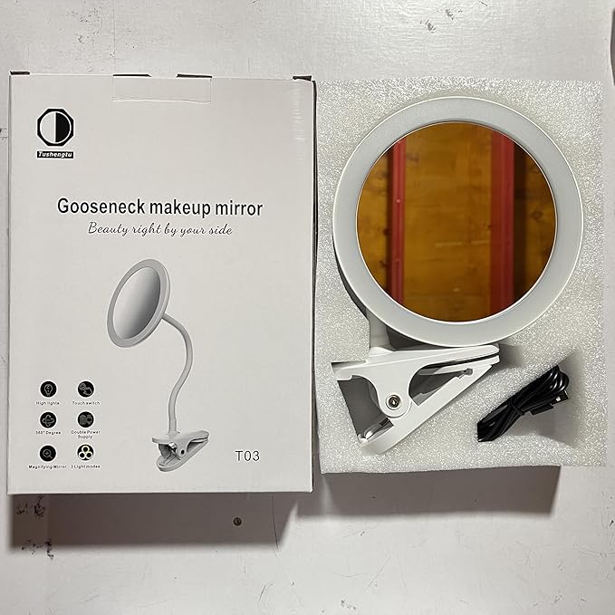 • 【24 Months After-Sales Service】 ✔️Package✔️Clip-on gooseneck makeup mirror *1, USB Cable *1. TUSHENGTU has strict quality inspection. We provide 24 months after-sales service. Please contact customer service for any problems in use. Clip on lighted makeup mirror