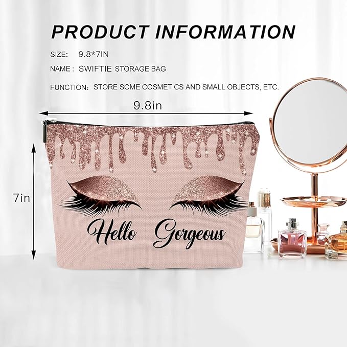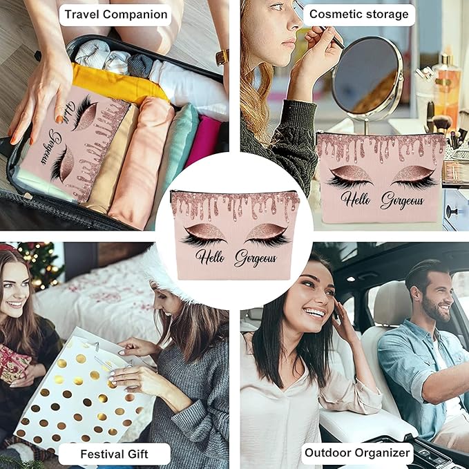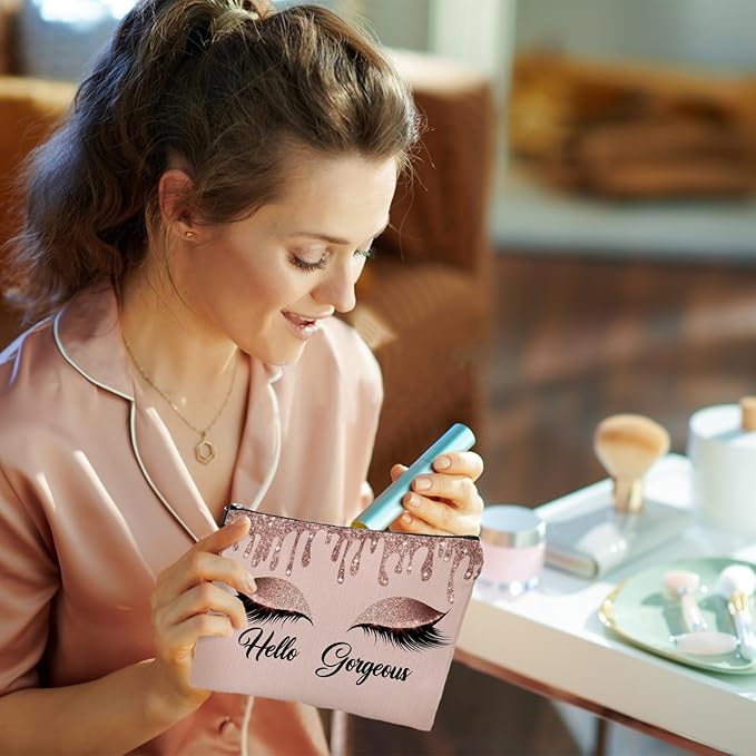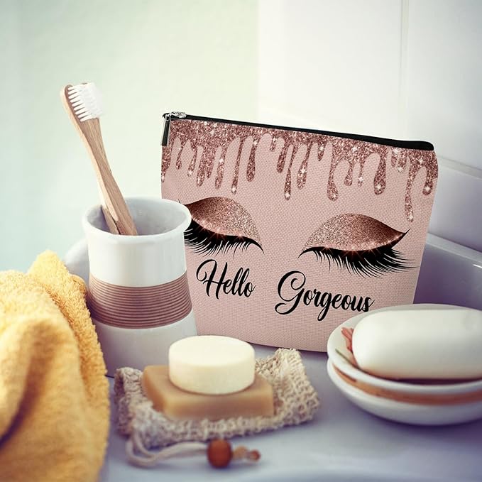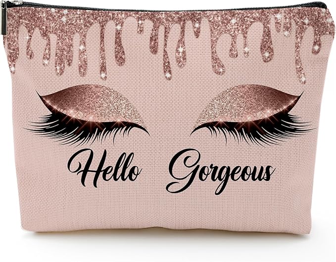 Hello Gorgeous Funny Makeup Bag Gift for Women Inspirational Cosmetics Pouch for Purse Travel Bag Cases for Toiletries Accessories Organizer