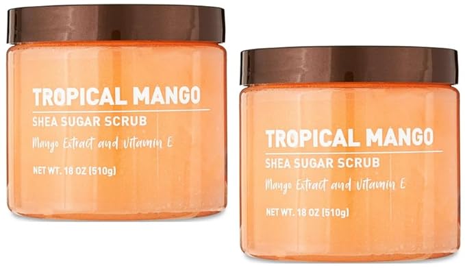 Shea Sugar Scrub, 18 oz ea. container, with, Ultra Hydrating and Exfoliating Scrub for Nourishing Essential Body Care + King Combo QR Code (Tropical Mango (2 count))