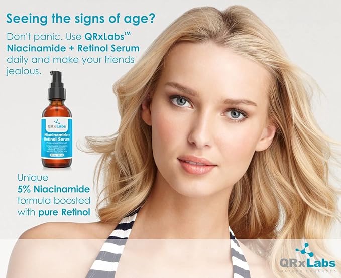 QRxLabs Anti-Aging Skincare Bundle: Glycolic Acid 10% Wrinkle Control Pads, Lemon Verbena Neck Firming Cream, and 5% Niacinamide + Retinol Serum β Anti-Wrinkle, Tightening, and Moisturizing
