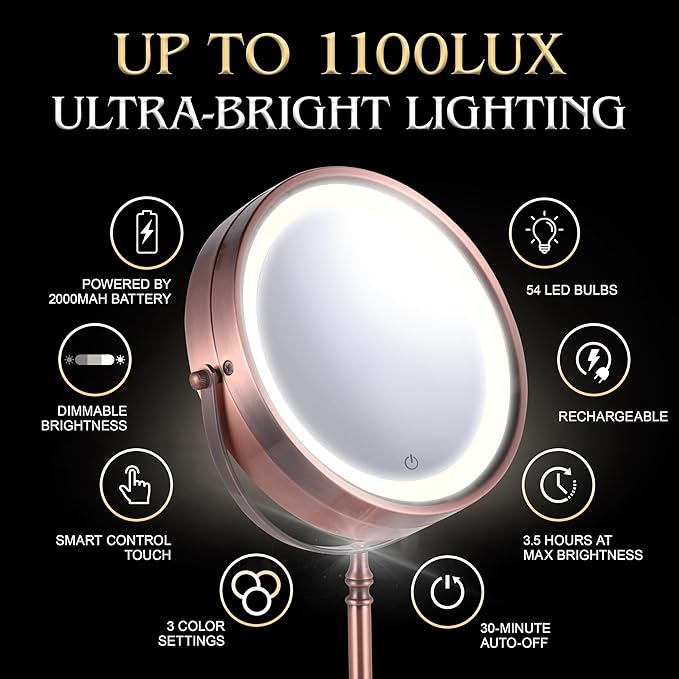 - π EASY LIGHT-UP: This mirror has a built-in rechargeable battery. Just use the included USB cable to charge it, and you're all set for bright light anytime.
