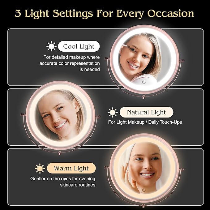 - π 3 LIGHT SETTINGS: Adjustable brightness? Check! Choose from warm, natural, or cool lighting and adjust the brightness to suit your mood or setting.