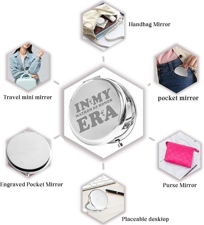 • Compact Mirror with Lettering: IN MY MATRON OF HONOR ERA. Makes a great gift for your Matron of honor.