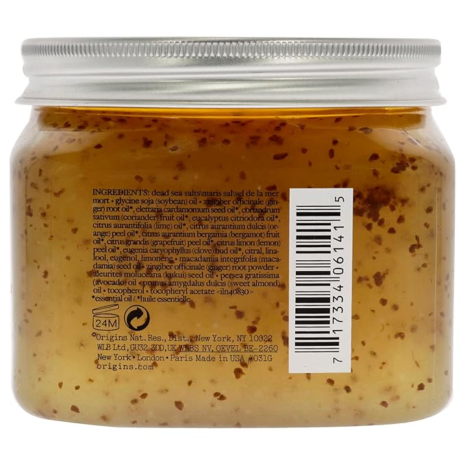 - Active Ingredients : Dead Sea Salts\Maris Sal\Sel De La Mer Mort, Glycine Soja (Soybean) Oil, Zingiber Officinale (Ginger) Root Oil*, Elettaria Cardamomum Seed Oil*, Coriandrum Sativum (Coriander) Fruit Oil*, Eucalyptus Citriodora Oil*, Citrus Aurantifolia (Lime) Oil* Citrus Aurantium Dulcis (Orange) Peel Oil*, Citrus Aurantium Bergamia (Bergamot) Fruit Oil*, Citrus Grandis (Grapefruit) Peel Oil*, Citrus Limon (Lemon) Peel Oil*, Eugenia Caryophyllus (Clove) Bud Oil*, Citral, Linalool, Eugenol, Limonene, Macadamia Integrifolia (Macadamia) Seed Oil, Zingiber Officinale (Ginger) Root Powder, Aleurites Moluccana (Kukui) Seed Oil, Persea Gratissima (Avocado) Oil, Prunus Amygdalus Dulcis (Sweet Almond) Oil, Tocopherol, Tocopheryl Acetate. Dead Sea Salts\Maris Sal\Sel De La Mer Mort, Glycine Soja (Soybean) Oil, Zingiber Officinale (Ginger) Root Oil*, Elettaria Cardamomum Seed Oil*, Coriandrum Sativum (Coriander) Fruit Oil*, Eucalyptus Citriodora Oil*, Citru⦠See more