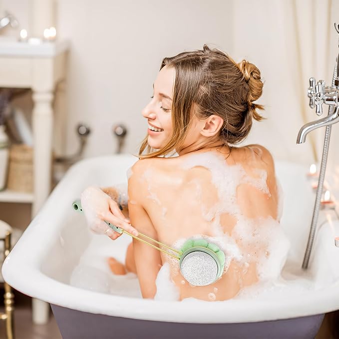 - 𝐄𝐱𝐭𝐫𝐚-𝐋𝐨𝐧𝐠 𝐇𝐚𝐧𝐝𝐥𝐞 𝐟𝐨𝐫 𝐄𝐚𝐬𝐲 𝐑𝐞𝐚𝐜𝐡:At 40 cm, the handle helps you effortlessly reach and cleanse hard-to-get areas like your back and feet without bending or stretching, suitable for users of all ages and body types.