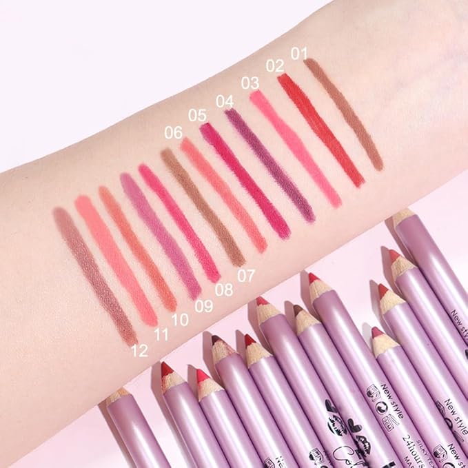 12 Pcs Natural Nude Brown Beige Colors Lip Liner Lipstick Pencils Set for Daily Makeup,Easy to Apply & Remove,Waterproof (set12)