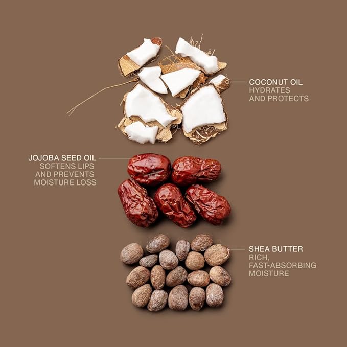 - DEEP, PLANT-POWERED HYDRATION: Our multi-use lip balm delivers deep hydration, powered by coconut oil, shea butter, and jojoba seed oil, effectively soothing dry, flaky lips.This large-sized stick is versatile, as itβs suitable for use on lips, cuticles and cheeks.