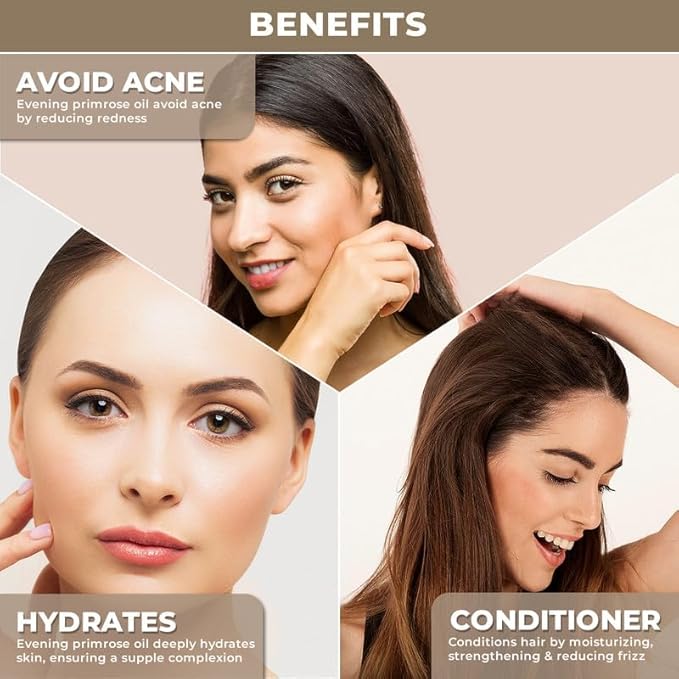 - USDA Organic Evening Primrose Oil: Experience the benefits of 100% pure and natural evening primrose oil for your skin and face.