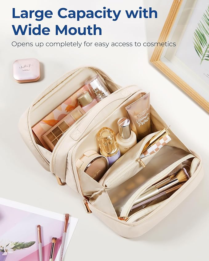 • 【Versatility】With an elegant and charming appearance and available in 3 colours, this large makeup bag serves not only as a travel companion but also as a versatile toiletry bag, travel wallet, tech accessory organizer, travel accessory bag, or daily storage pouch. These cosmetic bags for women are perfect gifts for Women's Day, Valentine's Day, birthdays, anniversaries, Mother's Day, and other holidays.