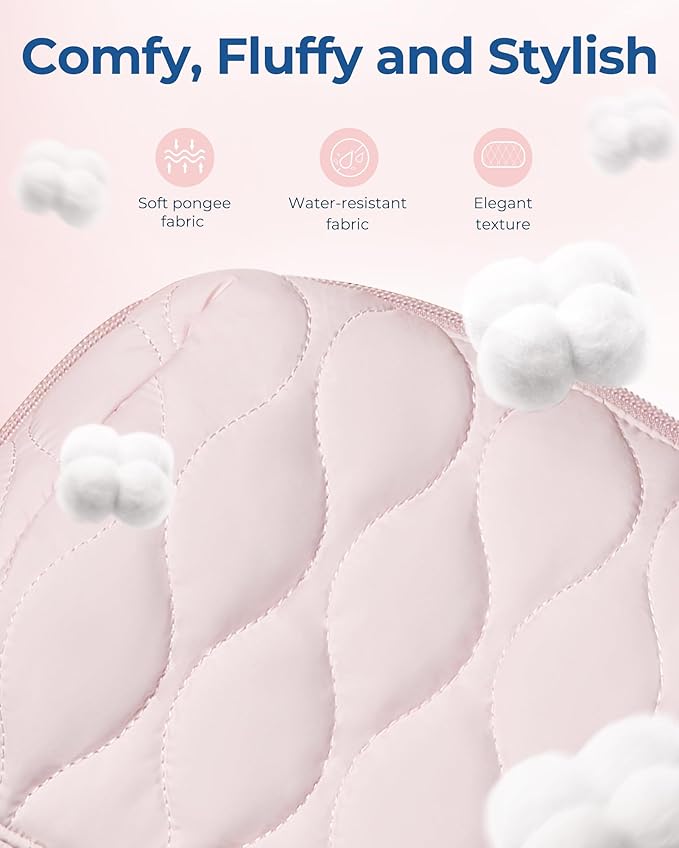 - 【Sophistication with Comfort】- Indulge in luxury with the soft and luxurious fabric of this cute and puffy makeup bag. Its laid-back vibe effortlessly complements your beauty routine, adding a touch of relaxation to your daily rituals. Enjoy the process of getting ready while feeling pampered with the supple texture of this cosmetic case.