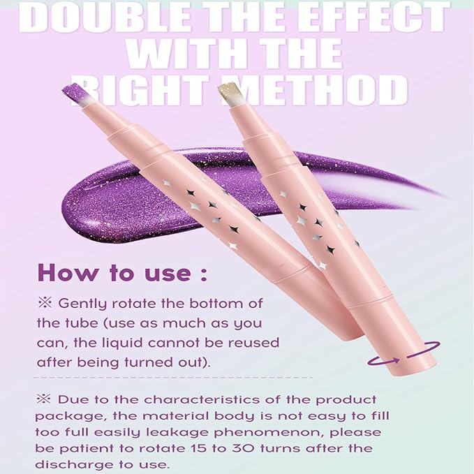 - 🌈【Easy Application】Liquid Eyeshadow Precise brush tip and twist knob design. Easy to control the amount, and delicate use of the brush tip can further enhance the glossiness of the eye. Removes easily with makeup remover. !!!WARM REMINDER!!! When using it for the first time, rotate the knob at least 8-10 times until the formula liquid flows out. When you feel pressure while rotating, you should twist slowly, otherwise, the lip gloss may output too much.