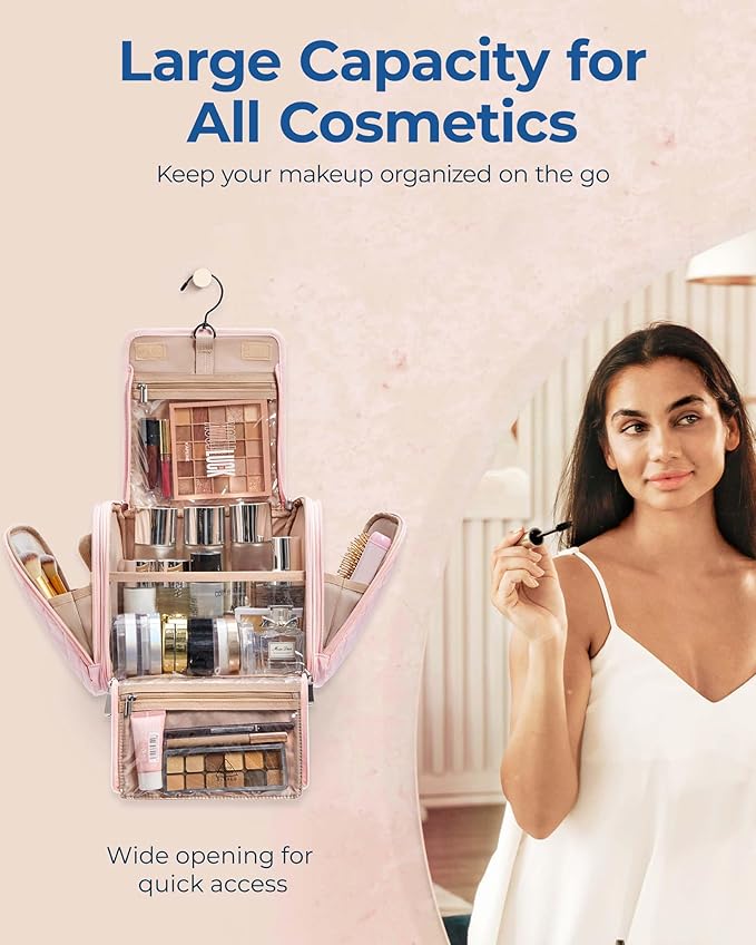 • 【Multi-functional Makeup】: This portable hanging makeup bag is a multifunctional organizer bag that combines the functionality of a makeup bag and a travel toiletry bag. It is an excellent choice for a wide range of activities, from travel, business trips, fitness routines, and beach outings to picnics and home storage. It also makes for a perfect gift for ladies, friends, and family on special occasions such as birthdays, Christmas, and Valentine's Day.