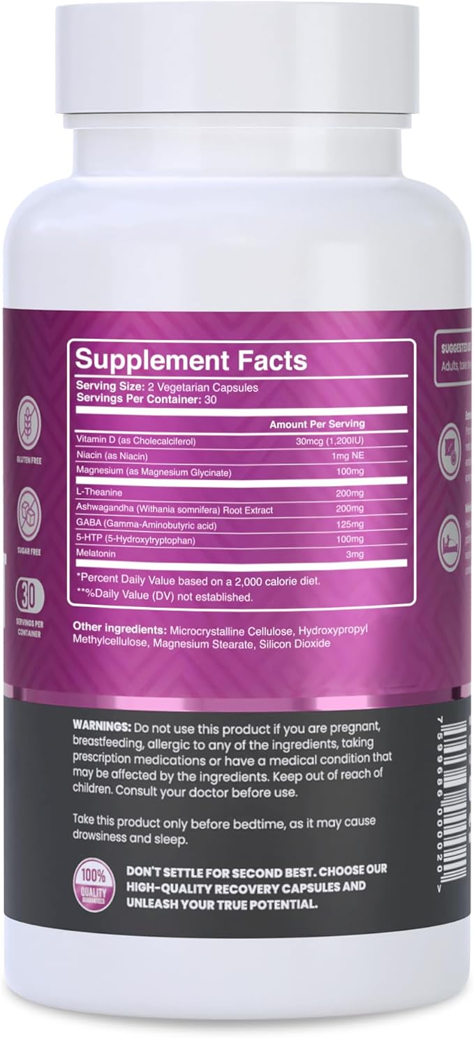 Natural Sleep Aid for Adults, Sleep Supplement, Natural Calm, Melatonin with L-Theanine, Magnesium Glycinate, Ashwagandha, GABA, 5-HTP, Vitamin D & Niacin (30 Day Supply)