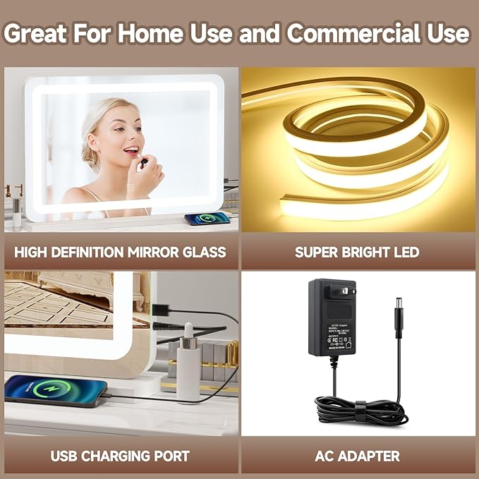 - ✅Suitable for Home and Commercial Use: This LED vanity mirror caters to both personal and commercial needs, making it perfect for use in hair, makeup, and beauty salons. It is also an excellent addition to any home setting, adding a touch of luxury and practicality to any space.