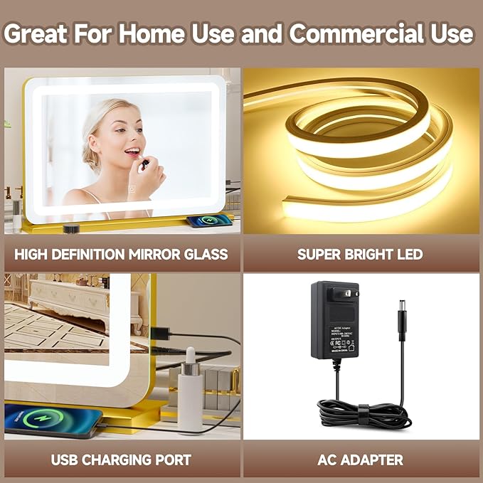 - ✅Perfect Gift Idea: Whether you're treating yourself or looking for a thoughtful gift, this LED vanity mirror is a perfect choice for makeup enthusiasts, skincare lovers, or anyone who appreciates a quality beauty accessory.