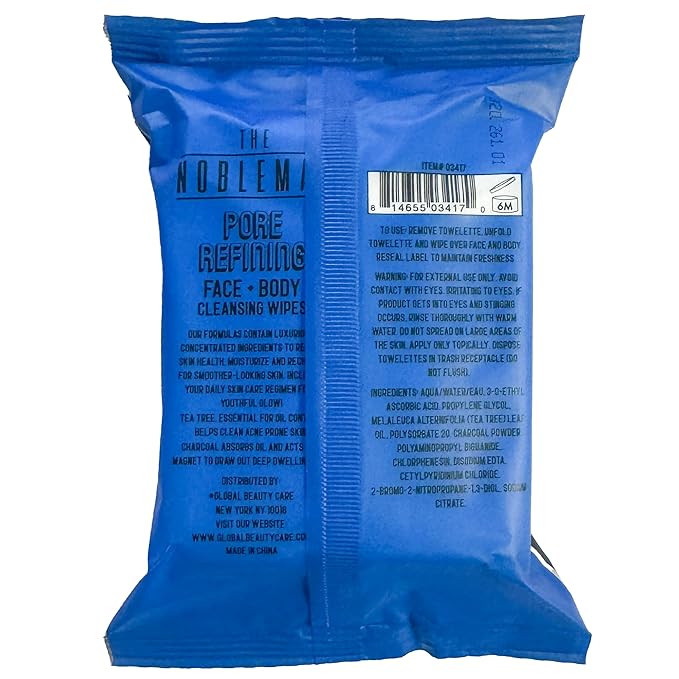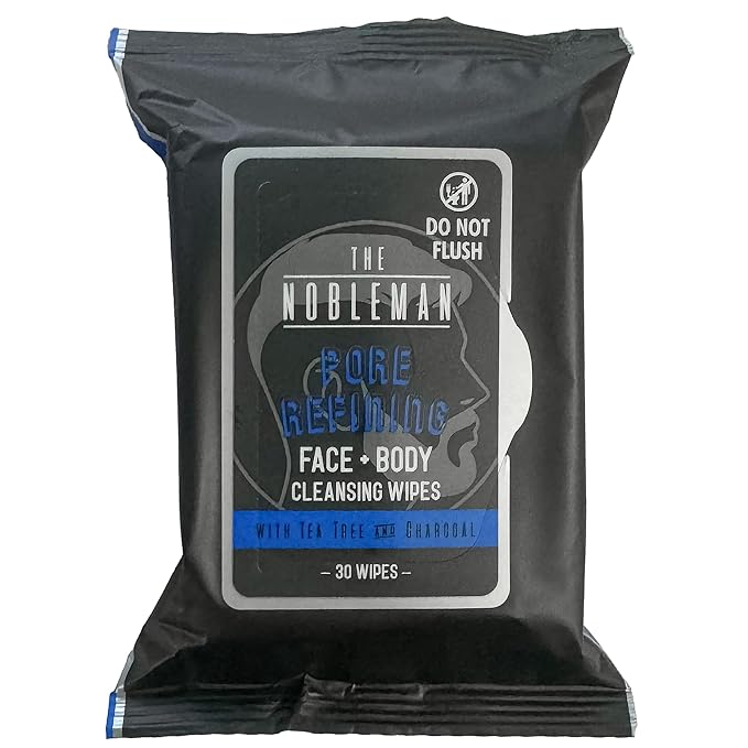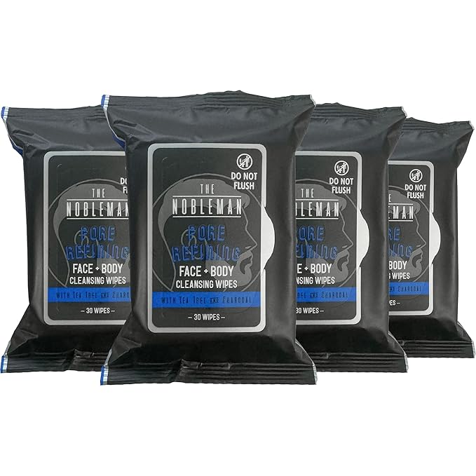 Global Beauty Care The Nobleman Pore Refining Face + Body Cleansing Wipes, 120 Count, Tea Tree & Charcoal