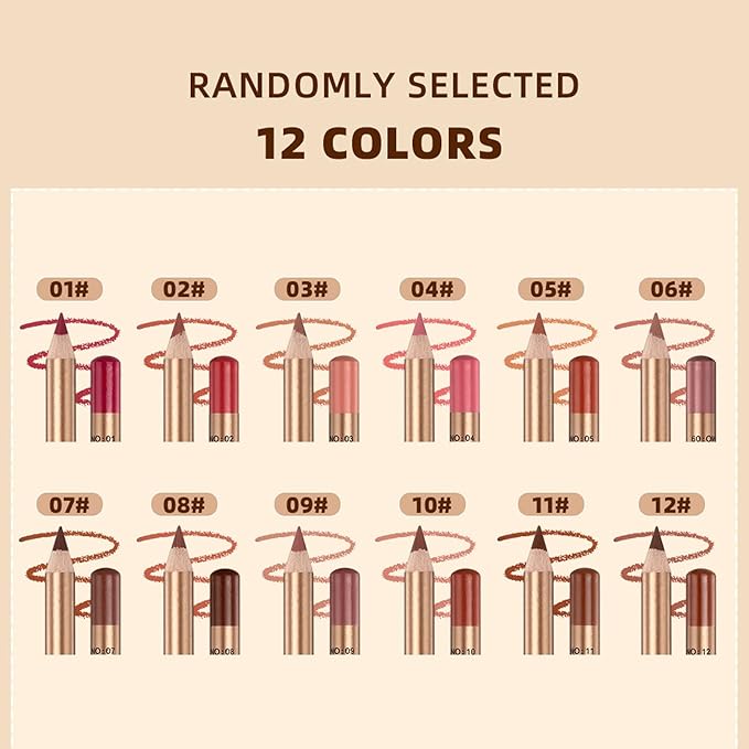 12PCS Long Lasting Lipliner Set High Pigmented, Smudge Proof Lip Makeup Pencil for Daily Use, Silky Smooth Application with 3mm Fine Tip