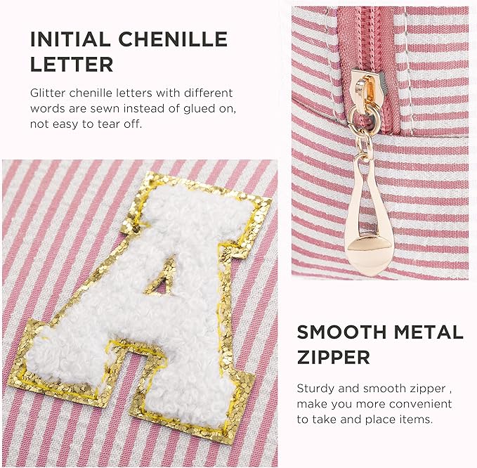 - 【High-Quality Material】Made from soft and durable seersucker fabric, these preppy makeup bags are lightweight and long-lasting. They keep their shape and look great, whether for everyday use or travel. The durable material ensures your items are well-protected.These girl trendy stuff will be sweet gift for girls