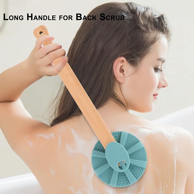 - Lather Up Easily and Deep Cleaning: Our silicone shower brush uses flexible silicone bristles to help easy lather and deep clean, strong enough to meet your exfoliating needs, and soft enough to care for your skin. The silicone shower brush can gently exfoliate your pores, remove dirt and your body oil to help soften, glowing the skin.