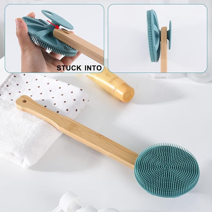 Long Handle Back Scrubber Silicone Body Scrubber Nice Foaming Shower Brushing Exfoliating and Massaging