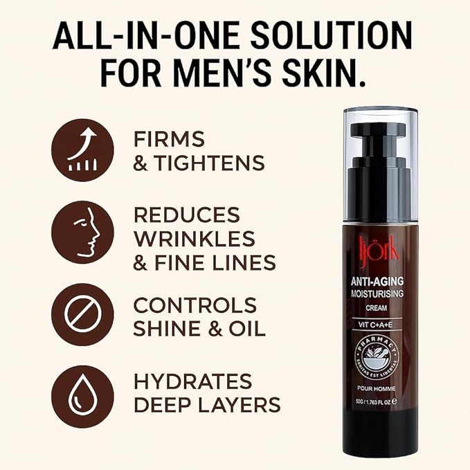 - Special Feature : Advanced Proven Anti-Aging Blend: Enriched with Collagen, Squalane, and Vitamins A, C, & E to firm, hydrate, and rejuvenate., Airless Pump Packaging: Protects formula from air and contamination, ensuring maximum freshness and potency., Designed for Men’s Skin – Specially formulated to penetrate thicker, oilier male skin for deeper hydration and visible results., Fragrance Free – Gentle on sensitive skin and leaves no overpowering scent, making it ideal for daily use., Lightweight & Non-Greasy: Fast-absorbing texture leaves skin smooth and fresh, perfect for daily use Advanced Proven Anti-Aging Blend: Enriched with Collagen, Squalane, and Vitamins A, C, & E to firm, hydrate, and rejuvenate., Airless Pump Packaging: Protects formula from air and contamination, ensuring maximum freshnes… See more