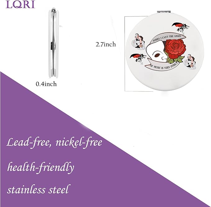 LQRI Opera Musical Compact Mirror Rose and Mask Gift Musical Theater Merch Opera Drama Pocket Mirror