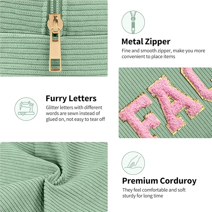 • 【HIGH-QUALITY MATERIAL】 Makeup bag is made from soft corduroy with a nice lining, easy to clean. And coupled with a sturdy metal zipper keep your items organized and secure.