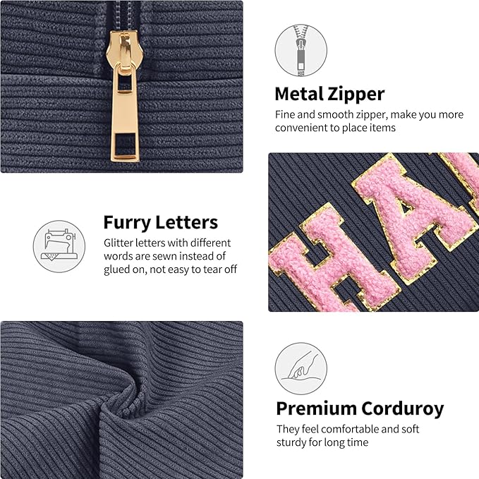 • 【HIGH-QUALITY MATERIAL】 Makeup bag is made from soft corduroy with a nice lining, easy to clean. And coupled with a sturdy metal zipper keep your items organized and secure.