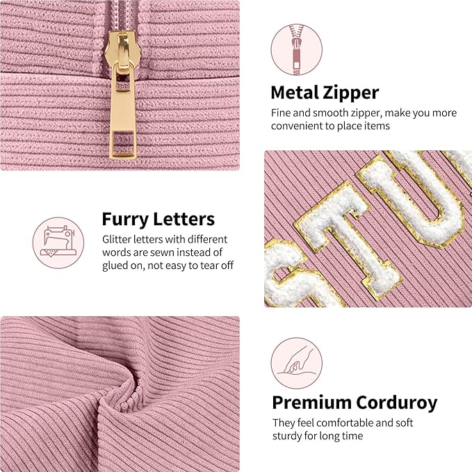 • 【HIGH-QUALITY MATERIAL】 Makeup bag is made from soft corduroy with a nice lining, easy to clean. And coupled with a sturdy metal zipper keep your items organized and secure.