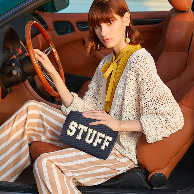 • 【GLITTER CHENILLE LETTERS & PRACTICAL LABELS】 Each make up bag features chic chenille letter patches, securely stitched with labels: HAIR, FACE, STUFF, SKIN. This elegant design adds a stylish touch while helping you easily categorize and access your cosmetics and toiletries.