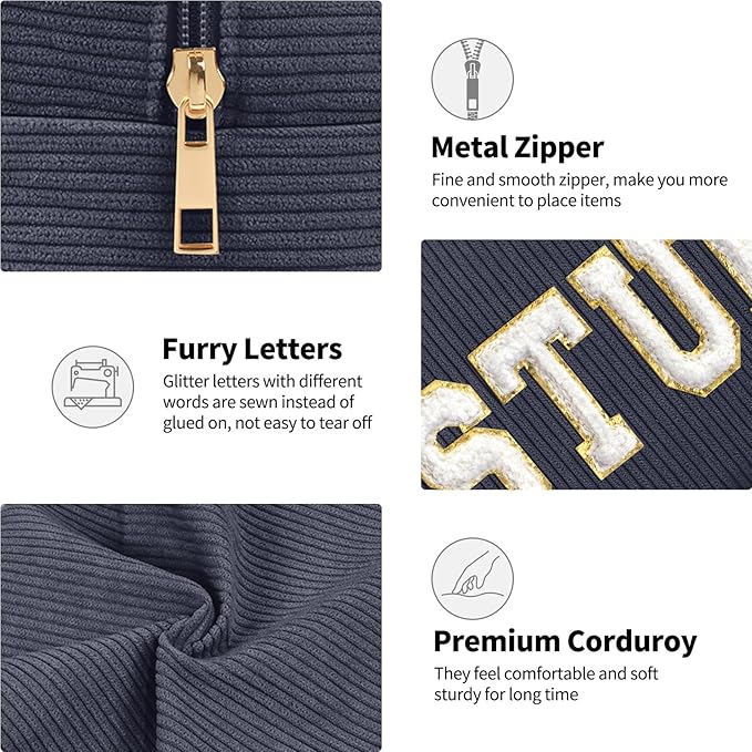 • 【HIGH-QUALITY MATERIAL】 Makeup bag is made from soft corduroy with a nice lining, easy to clean. And coupled with a sturdy metal zipper keep your items organized and secure.