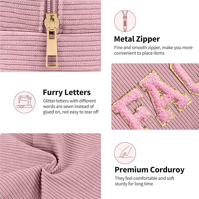 • 【HIGH-QUALITY MATERIAL】 Makeup bag is made from soft corduroy with a nice lining, easy to clean. And coupled with a sturdy metal zipper keep your items organized and secure.