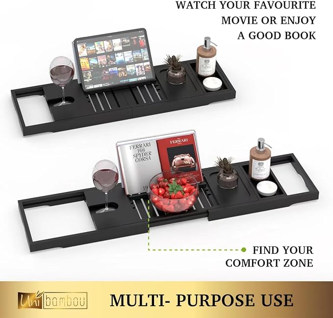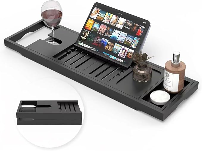 - 🍹Relaxing and Comfortable - Imagine what an enjoyable in this gorgeous bathtub caddy tray for bath with a glass of wine, fresh fruits , and favorite movie. The bathtub caddy tray for bath can make your bath time enjoyable and relax.