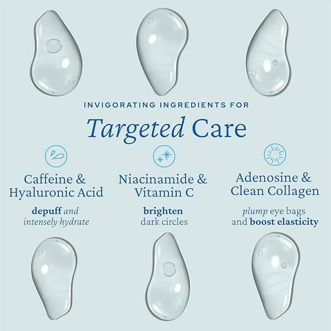 - REDUCES PUFFINESS & DARK CIRCLES: Formulated with powerful ingredients like Caffeine, Niacinamide, and Vitamin C, this eye gel targets puffiness, reduces dark circles, and brightens the skin around your eyes, giving you a refreshed look.