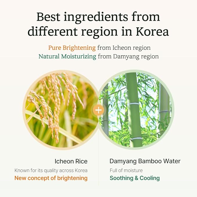 • [ONLY THE BEST INGREDIENTS] Korean Icheon rice for clear, spotless skin, and Damyang bamboo sap, rich in minerals, for an instant cooling effect. Each ingredient is harvested from the best regions in Korea, recognized by Koreans themselves