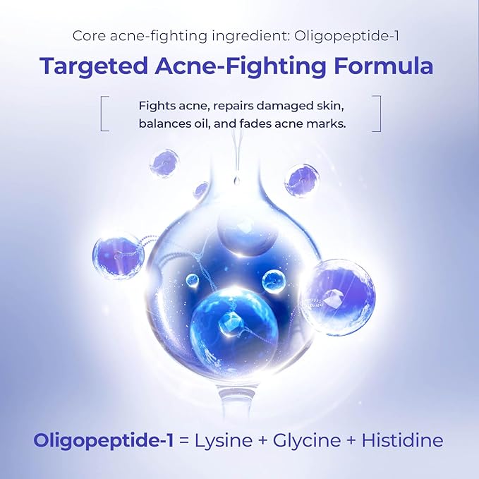 - Precision Acne Repair Formula: Key acne-fighting ingredient Oligopeptide-1, combined with Lysine, Glycine, and Histidine, enhances the skin's natural repair ability, effectively treats acne-prone skin, and improves elasticity and smoothness.
