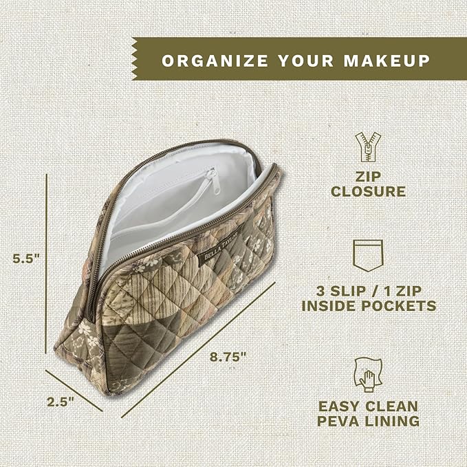 Bella Taylor Large Makeup Pouch for Women | Quilted Cotton Cosmetic Bag for Travel and Organization | Woodland Patch