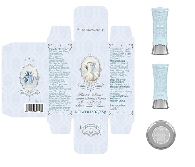 Flower Knows Swan Ballet Shine Lipstick,Hydrating Solid Lip Gloss,Moisturizing Pink Tinted Lip Balm-Long Lasting Lip Gloss in Balm for Girls&Women,Vegan & Cruelty-Free(B04 Silver Moon)
