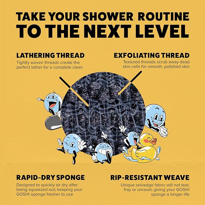 - The Softest and Cleanest Youβll Ever Feel: Introducing an exfoliating shower sponge for a refreshing body exfoliation experience made easy. Crafted in the finest Japanese textile mills, the GOSHI exfoliating shower sponge is woven with subtly contrasting fibers that both scrub your skin clear and wash your body clean.