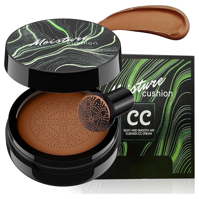 Mushroom Head Air Cushion CC Cream - Moisturizing & Oil Control BB Cream Foundation Create Long-Lasting, Waterproof Makeup Base Primer, Concealer Full Coverage for All Skin Types (Deep)