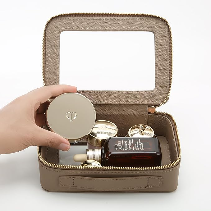 • ❤【TSA-APPROVED COMPANION】This makeup travel case is perfect for traveling as it is TSA compliant. The transparent panels help you keep track of everything you've packed. Our cute zipper pouch allows you to travel in style and with ease either at that TSA checkpoint or in of your destination bathroom.Reduce mess with our transparent train case.