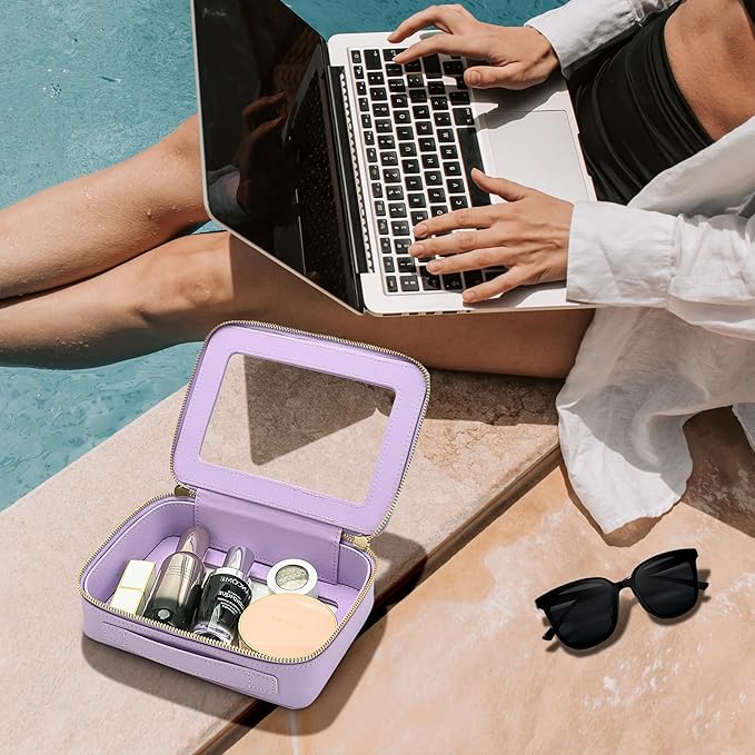 • ❤【TSA-APPROVED COMPANION】This makeup travel case is perfect for traveling as it is TSA compliant. The transparent panels help you keep track of everything you've packed. Our cute zipper pouch allows you to travel in style and with ease either at that TSA checkpoint or in of your destination bathroom.Reduce mess with our transparent train case.