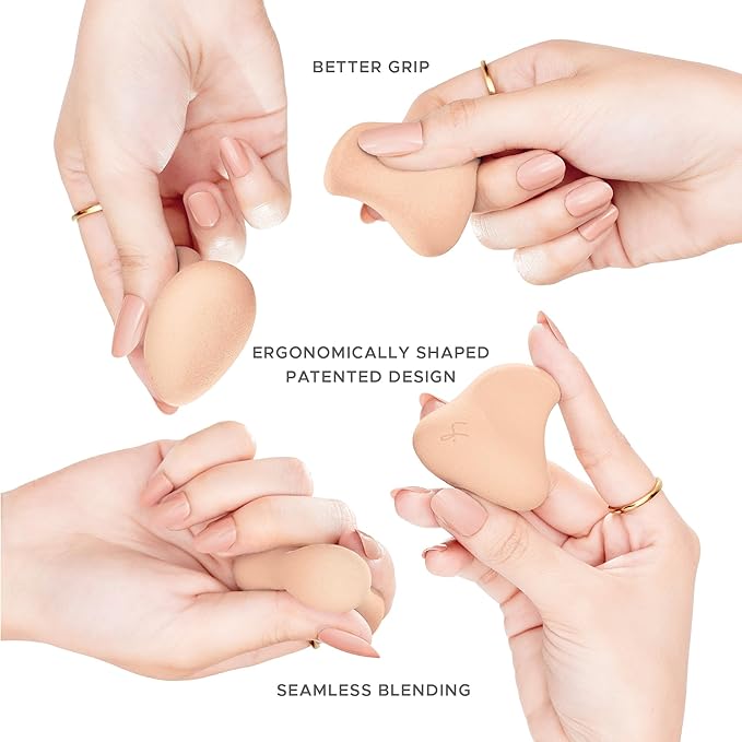 • PRECISION APPLICATION: Crafted for perfection, our makeup sponge for face has a unique shape including a base, tip point, and sides to effortlessly reach every facial contour and achieve a flawless blend.