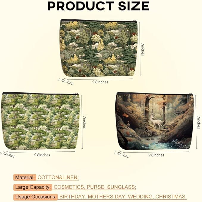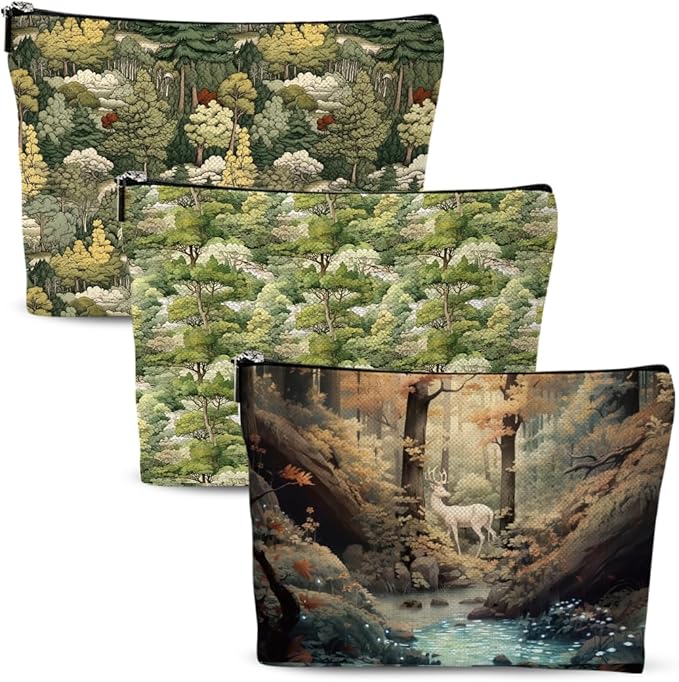 3pcs Cosmetic Bags for Women Makeup Bag, Bachelorette Party Favors Christmas Birthday Friendship Gifts for Women Girl Mom Sister Bestie Travel Toiletry Bag Skin Care Bag, Vintage Forest Deer Patterns