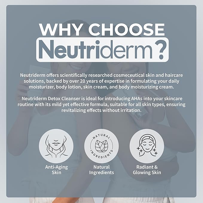 - Acne Prone, dead skin, large pores, or oily skin? Neutriderm Detox Face Cleanser deeply detoxifies, gently exfoliates dead skin cells, minimizes pores, and smooths uneven texture - all without harsh scrubbing.