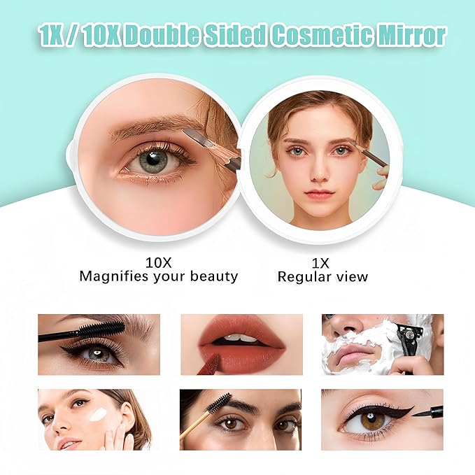 - [Grasp The Details and Enjoy The Beauty]--Our compact wallet mirror has a 1X magnification mirror on one side and a 10X magnification mirror on the other, which can show more details in front of you and help you have better control over the details. On this basis, it also Helping you with your delicate grooming needs, making you more beautiful, charming and confident.
