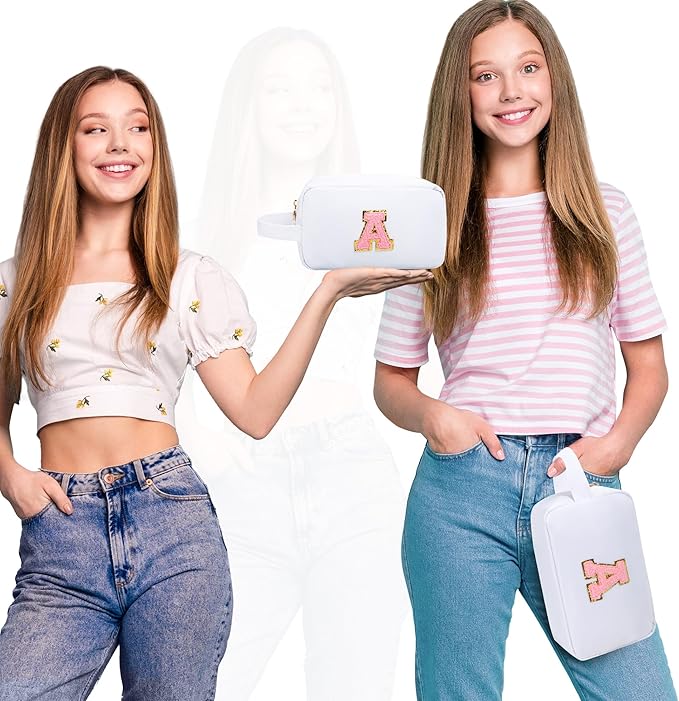 • UNIQUE INITIAL DESIGN: This monogram initial makeup bag with a sewn chenille letter is the perfect custom gift for beauty lovers. Featuring a portable handle and available in 26 letters, it's ideal as a personalized travel makeup bag organizer, adding a unique, stylish touch to your journey!