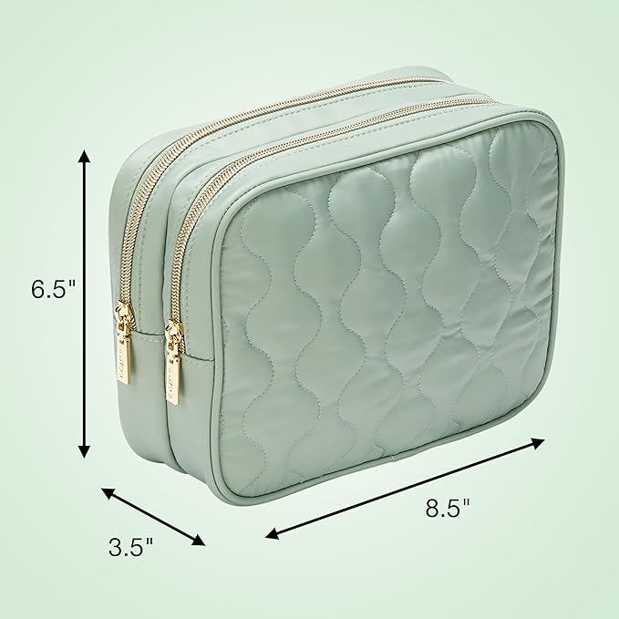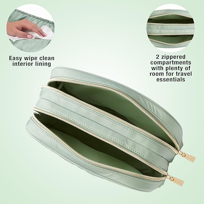 Conair Double Zip Toiletry Travel Bag-Makeup Organizer, Sage Green, 1 Count (Pack of 1)